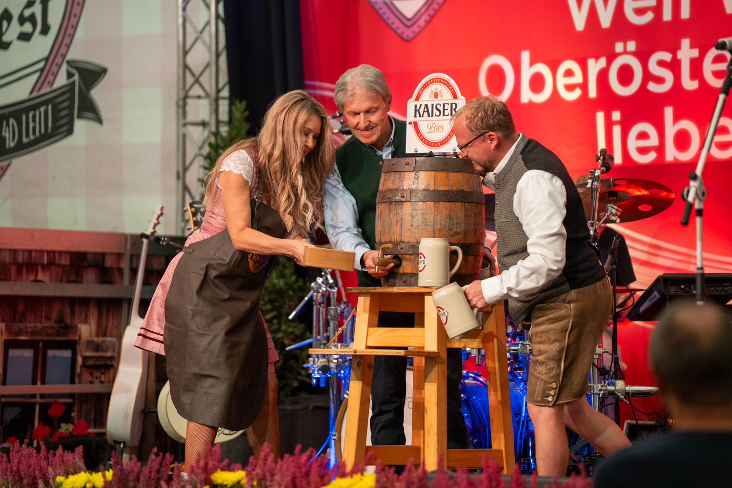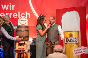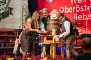 Noch bis 17:00 treten Schlagerstars im Festzelt auf der ORF Radio OÖ Partybühne auf, wir wagen trotzdem jetzt schon einen kleinen Rückblick. Mit fast 50 min Verspätung wurde das nächste Fass Freibier – diesmal von Schlagerikone Simone – angeschlagen.